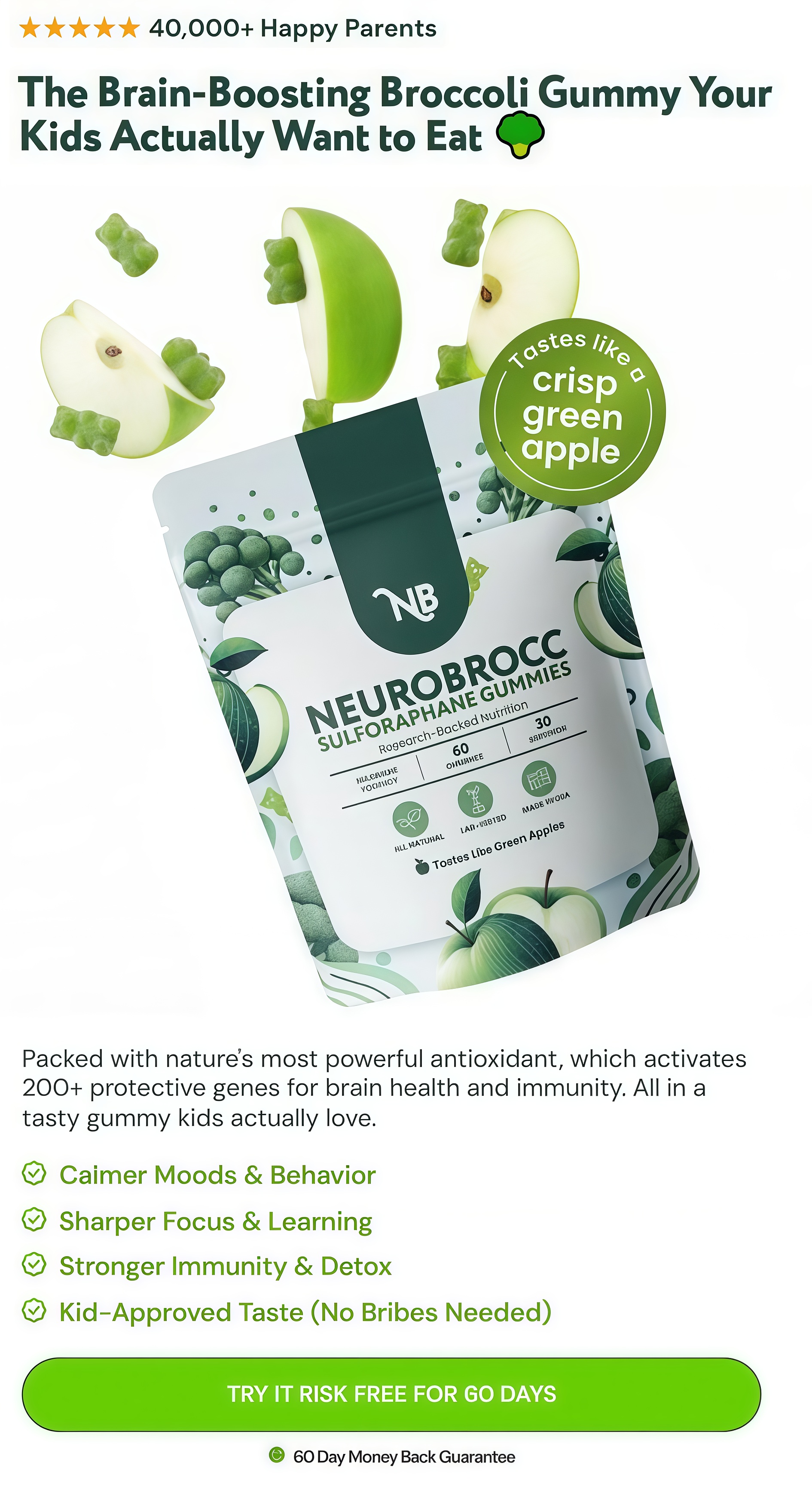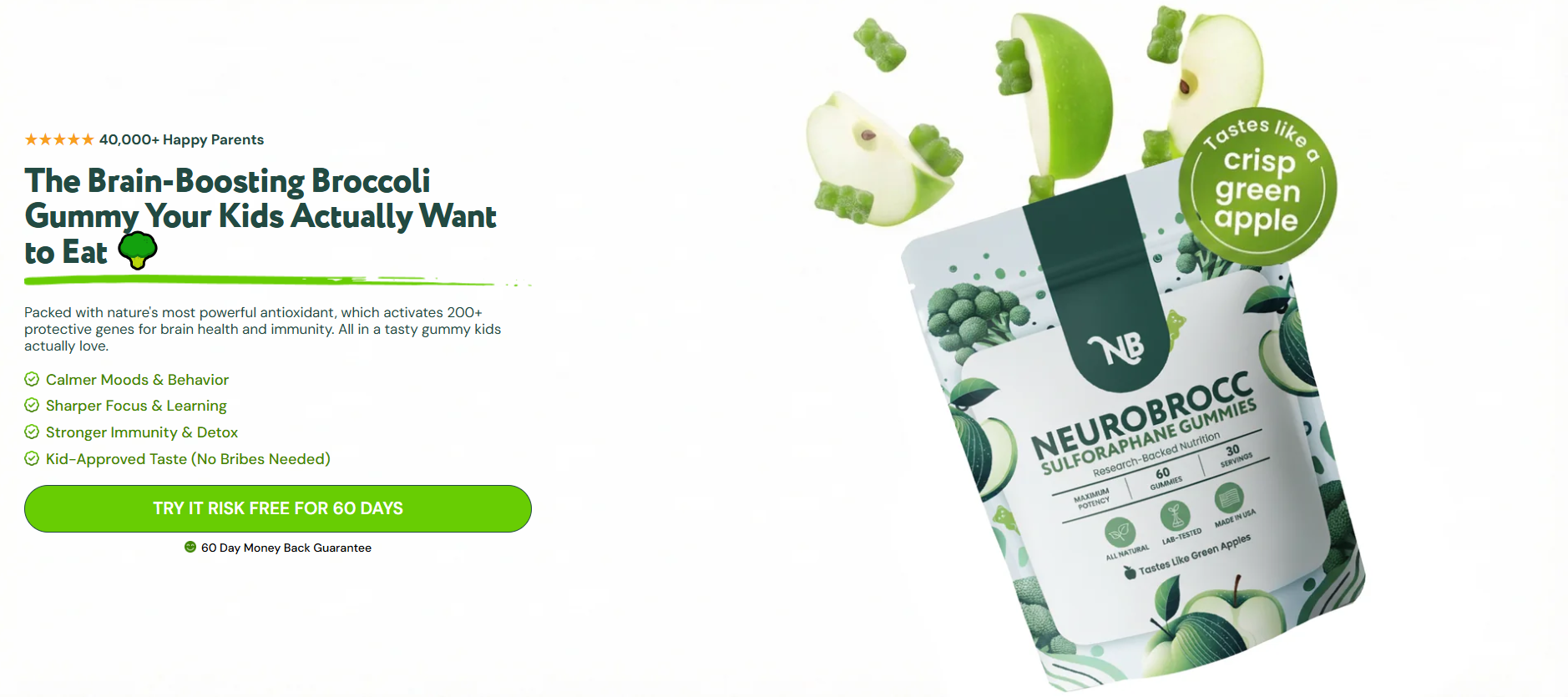 NeuroBrocc is not another multivitamin that just fills basic nutritional gaps. It's a science-backed daily gummy designed to help kids' growing brains and bodies thrive against today's biggest hidden threats.